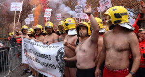 Bombers voluntaris es despullen davant el Departament d’Interior per denunciar la...