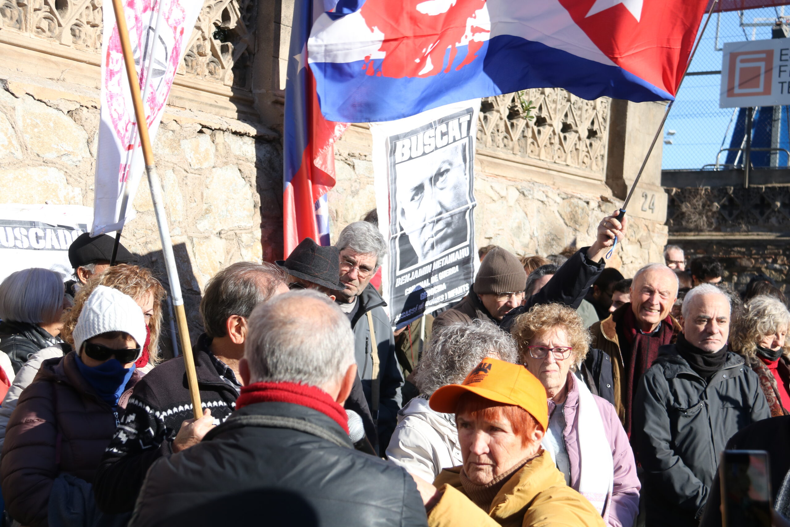 Els concentrats portaven banderes veneçolanes, palestines i cubanes, i cartells amb consignes contra el president nord-americà i també l’israelià, Benjamin Netanyahu. Els càntics s’han dirigit contra la política internacional que està desplegant l’administració Trump, tant amb el darrer episodi a Veneçuela, com amb la guerra de Gaza o els plans expansionistes del president nord-americà a regions com Groenlàndia.